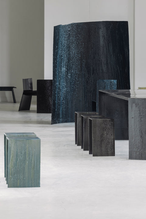 "Critical Mass", a return to some of the most industrial, heavy, and raw materials available: plate steel and marble.
