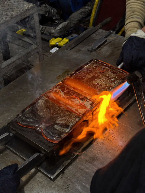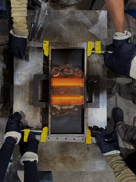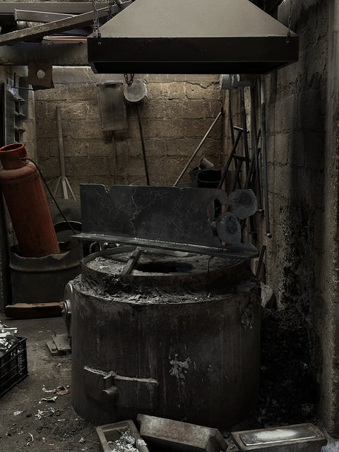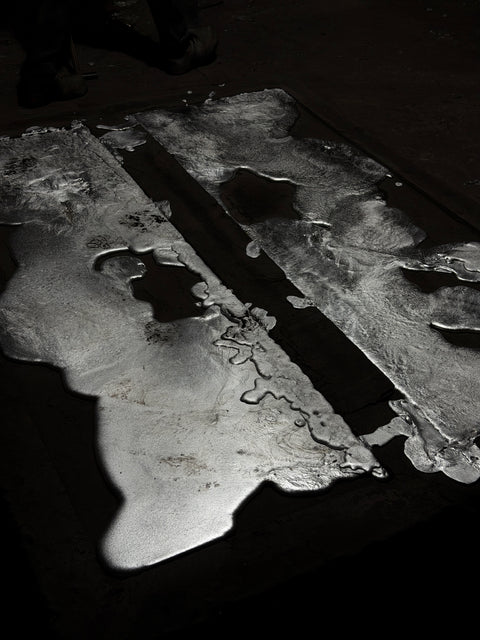 The studio’s ongoing research has materialized in three interconnected collections. Digital Matter represents a convergence between digital technology and the artistic expression of aluminum as a material. From this exploration, and as a natural extension of the studio’s design process, Ciénaga emerges from experiments exploring the behaviour of liquid aluminum when dripped into sand. Expanding this line of inquiry, Ciénaga Glass translates the experimental principles developed through molten aluminum into the material universe of glass, extending the studio’s research across materials while preserving a shared logic of process and form.