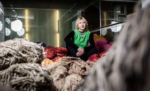 I moved to the Netherlands first for a job in fashion and then fell in love with Amsterdam. It really is a great place to live and is open-minded when it comes to innovation and creativity. The country also used to have a really big textile industry. When I just started making these pieces, I needed a lot of material which did not feel right to buy new ones. I found someone who was collecting leftovers from fabrics and was buying it from him. Afterwards he told me how the industry had moved abroad and he had been buying up the leftovers from when the factories closed down. The search for new sustainable materials was a journey to follow the traces that the textiles industry left behind. That is when I found this UNESCO Heritage site, which is where I now source leftover wool from.