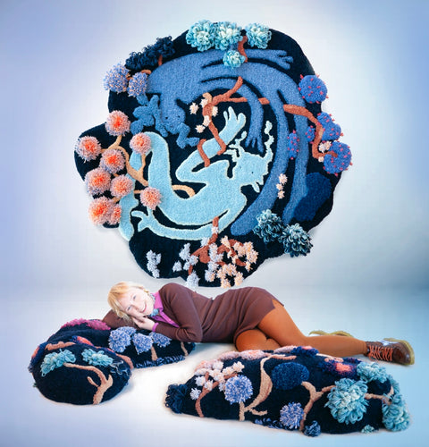 Swedish artist and designer Alfhild Külper, also known as Alfie’s Fuzzy Friends, is an emerging textile designer based in Amsterdam. Graduating from Central Saint Martins, the artist initially worked in fashion as a prominent head of design at Viktor&Rolf before pursuing full time her passion of creating hand-tufted textiles collectibles.