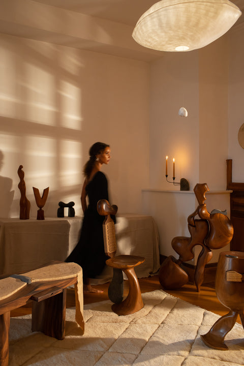 Kim Mupangilaï is a Belgian-Congolese, New York-based Interior Architect and Designer. Inspired by her own heritage and roots, Kim’s work reflects the merging of cultures. The designer aims to bring a unique perspective and insight that encourages fresh discourse within the design world and beyond. She received her Bachelor’s in Graphic Design and her Master’s in Interior Architecture at the LUCA School of Arts/KU Leuven in Belgium. Mupangilaï has contributed her expertise to numerous interior projects before turning her focus to her inaugural furniture series. She exhibited her first work at Design Miami 2022 and 2023. Her exceptional talent and innovative approach have garnered widespread recognition, including a nomination and selection as an Honoree for the AD100 List Middle East & Africa 2024. Her accomplishments have been highlighted on the cover of Milk Decoration and Sabato magazines, as well as in publications such as Architectural Digest, Artnet, De Morgen, Dezeen, Financial Times, Galerie, Interior Design, Sight Unseen, Surface, and The New York Times