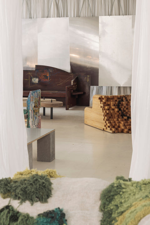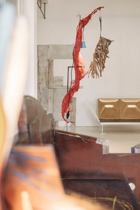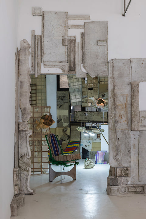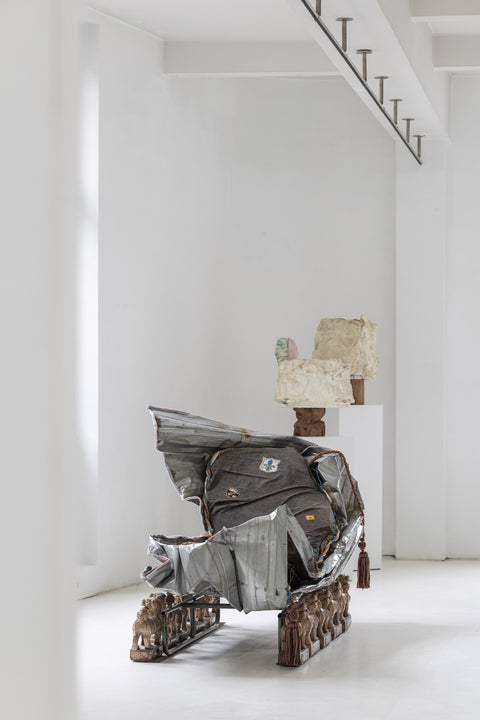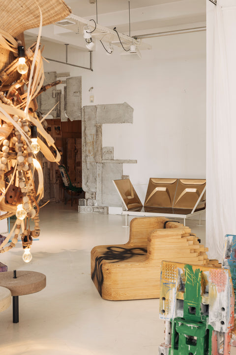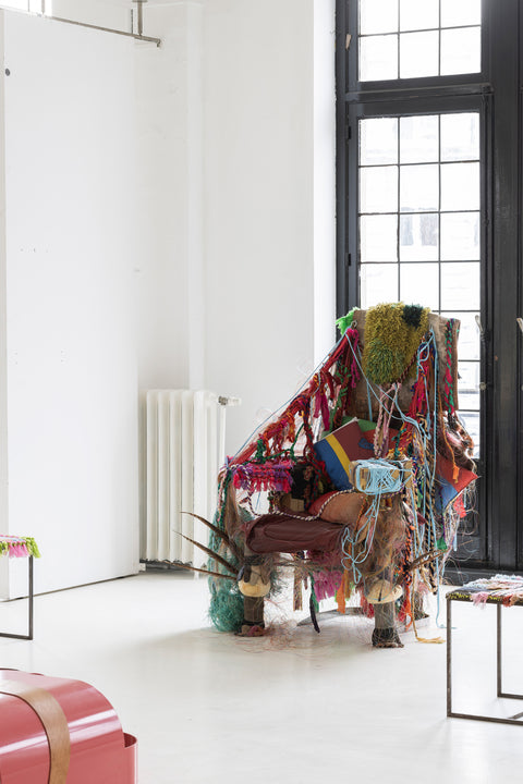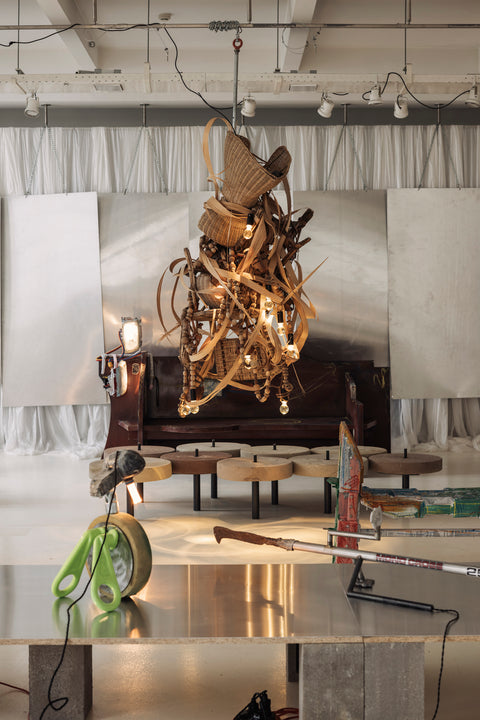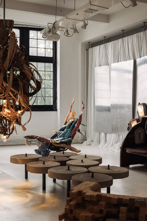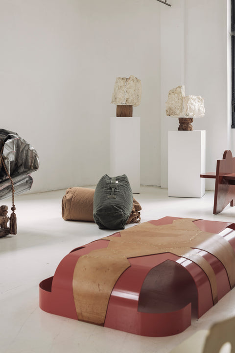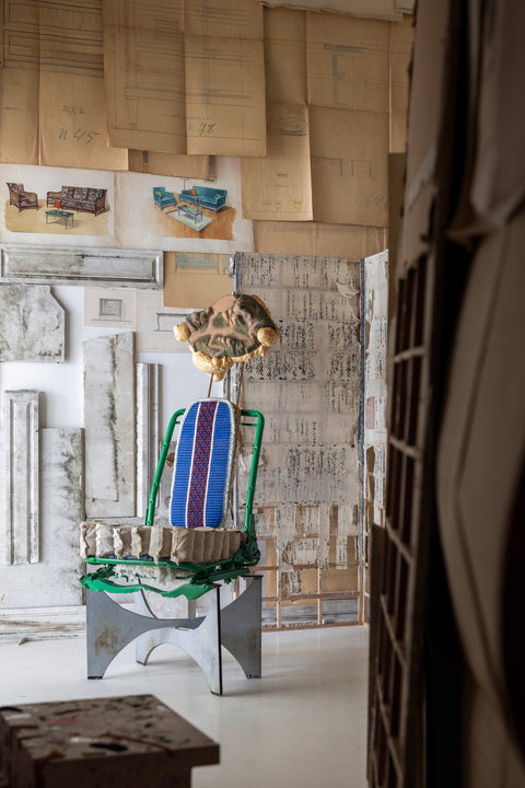 The principle of reclamation has been relevant to Jadot from a young age. As a child in his father’s workshop, Jadot developed a keen attraction and respect for materials, coveting the bits of scrap wood and leather that would accumulate around the floor and had been deemed “fair game.” Today this manifests as both a philosophical and aesthetic tenet to his work. Manipulating materials that have been salvaged permeates the works with a sense of character, history, and humanity.