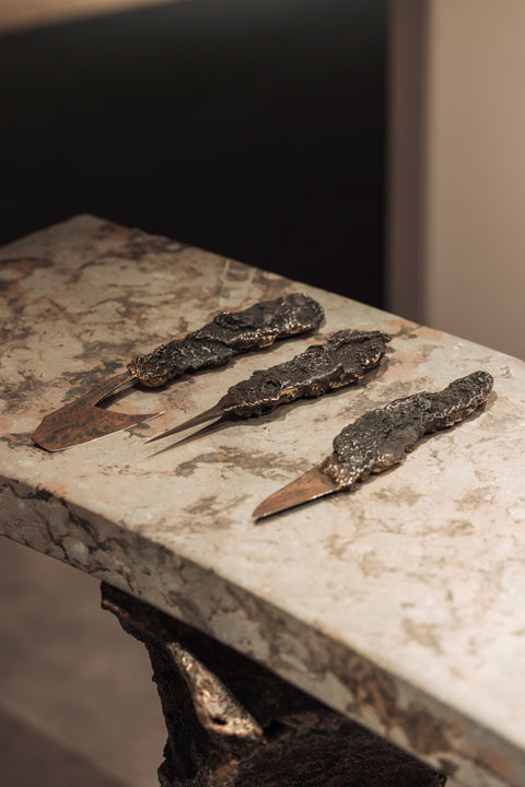 Each piece functions as both artifact and design object, bridging geology, craftsmanship, and artistic reflection. Together, they capture the sense of time - preserved, transformed, and reborn.