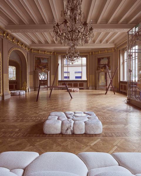 In Critical Mass, Paul Cocksedge returns to some of the most industrial, heavy, and raw materials available: plate steel and marble. He explores what happens when they are pushed into forms that speak of tension, intimacy, and the human hand.