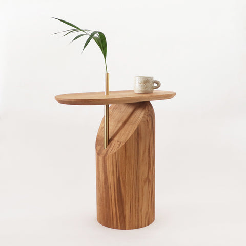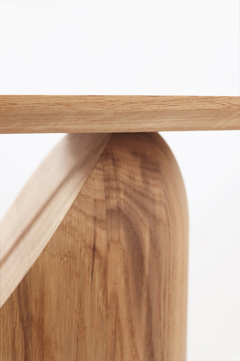 The form designed by Artur de Menezes unveils darker grains that are visible on the base of the table which is a message from the ground about what happened to the tree while it was growing. It shows that the tree was affected with a change of groundwater level. The roots connected with these fibers lose their connection to the effective supplies of needed substances. The knowledge about those facts is easy to acquire but hard to implement in the process of designing - it can happen through prototyping.