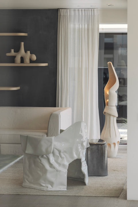 This light summer exhibition draws inspiration from the coastal landscape—capturing the soft, calm hues of sand, sea, and sky. From the light, airy color palette of the shoreline, this group show highlights collectible design that mirrors these natural elements, bringing together art & design into a completely liveable environment.